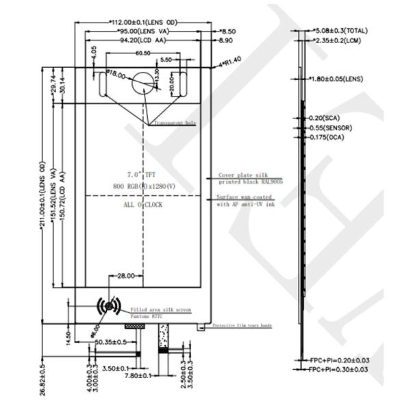 Introducing a 7" MIPI TFT LCD with a 800*1280 resolution, capacitive touch screen,and IPS technology with 550cd/m² brightness, here's a detailed product overview: